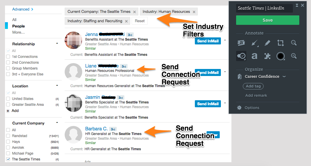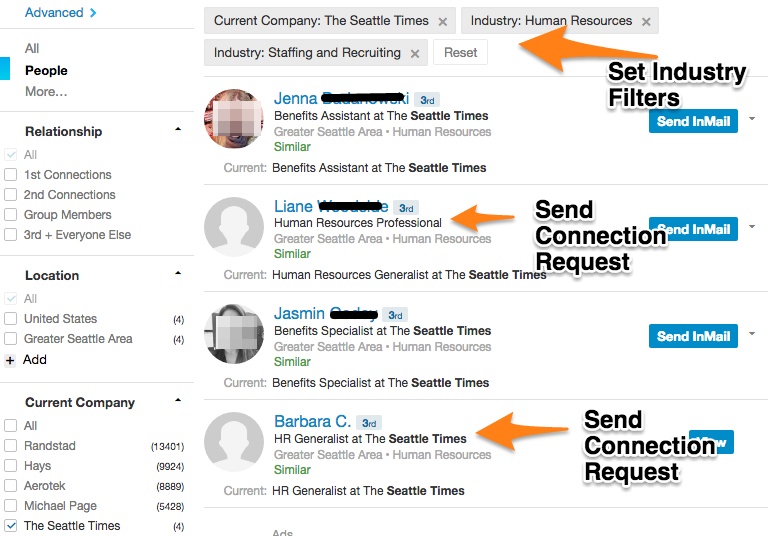 Then you will see Liane, Human Resources Professional and Barbara C., HR Generalist at The Seattle Times. Barbara is most likely going to be the person reviewing your resume. However, It would be best to send a personalize connection request to both individuals.
