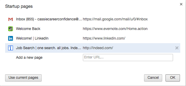 Add the pages you would like to open automatically
