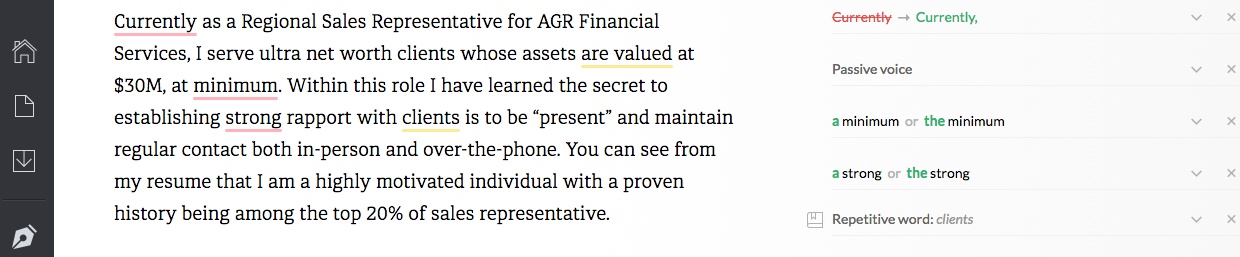 1. Grammarly– Having a spelling and grammar checker is crucial for online job applications because it spell-checks within applicant tracking systems. Otherwise, you would want to copy and paste the info you are entering into Word, and that’s just a pain!