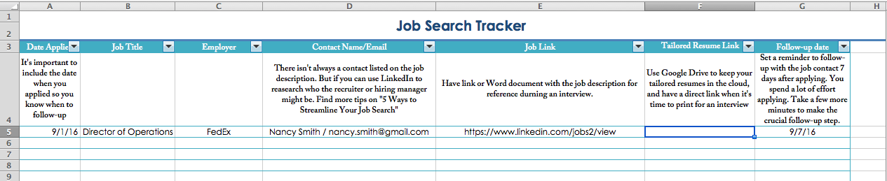 (1) Download my job search tracker with all the information you need to keep your job search organized, especially when they call for an interview.